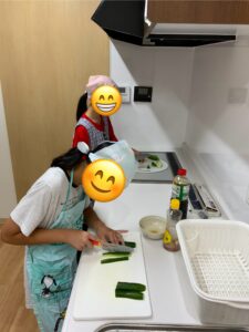 それぞれ「何を作ろうかな~♪」と自分たちで調べ、きゅうりは浅漬けにしたり塩を振ってそのまま食べたり。