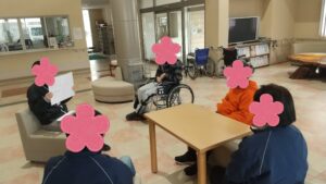 昼食前に少人数で「パタカラ体操」という口の体操を行っています。毎日10分、無理のない範囲で和気あいあいとした雰囲気の中で取り組んでいます。