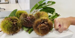 立派なたくさんの栗たち…イガイガは触ると思っていた以上に痛く、素手では触れませんでした👐